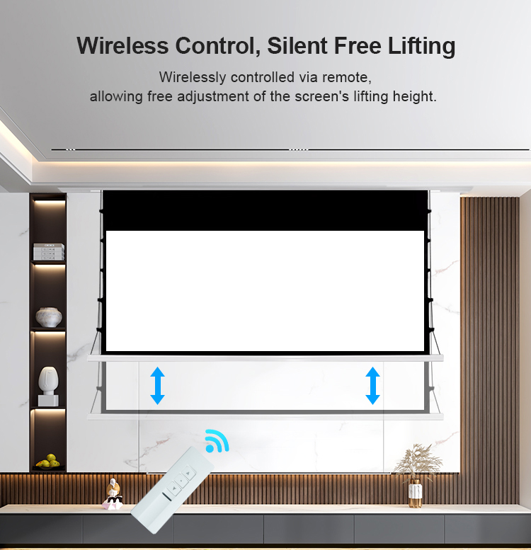 The screen's lifting height can be freely adjusted through remote wireless control.