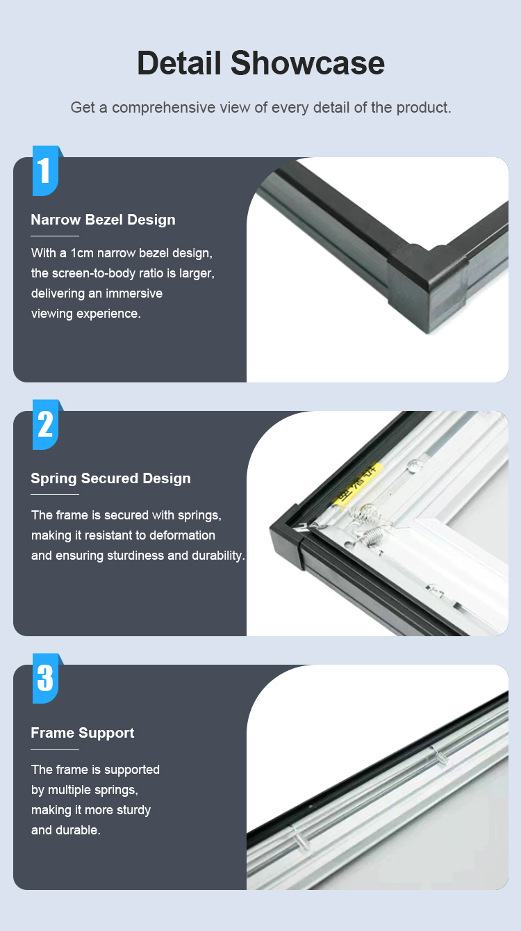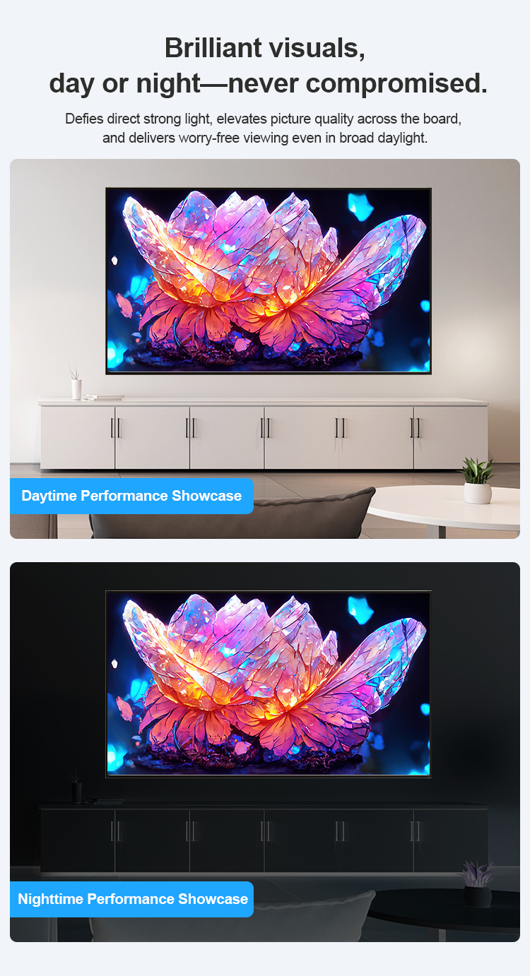 With high brightness gain and excellent color reproduction, the product captures every subtle color in daylight, immersing you in a realistic viewing experience. The design of the anti-glare frame screen is not merely a cold, technological beauty, but rather an artistic masterpiece that harmonizes seamlessly with your home decor.